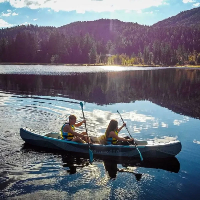 Le Canoë kayak profilé MOLVENO est un kayak gonflable révolutionnaire avec la technologie Drop Stitch, la même que sur un Paddle, ce qui assure une rigidité encore jamais vu sur un canoë kayak gonflable.