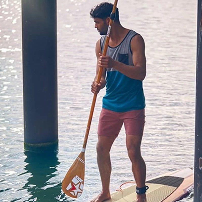 Cette pagaie style bambou est réglable en hauteur (jusqu’à 220cm). Elle a une palle rigide, un noyau en mousse EPS et une poignée T de qualité supérieure en carbone, ce qui la rend légère. Idéale pour assortir avec votre planche bambou SUP !