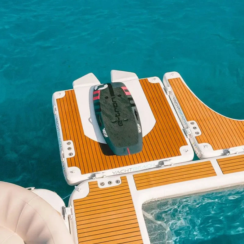 Il est à noter que le Yachtbeach Single Foil Dock peut être facilement combiné et adapté à toutes les plates-formes Yachtbeach 4.1 & 3.0 et aux piscines de luxe grâce au système de connexion par poignée. Belle, agréable, antidérapante et résistante surface en mousse d’EVA à l’aspect teck.