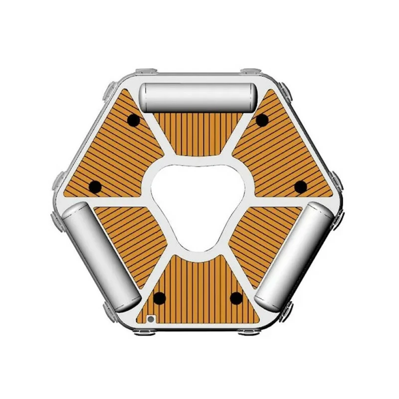 La nouvelle plateforme hexagonale Yachtbeach Relax Zone 2.50M a été créée pour se détendre au bord de la mer en toute tranquillité et profiter de merveilleuses journées de piscine derrière votre yacht. Le filet vous protège, vous et vos amis, des méduses et autres créatures marines. La surface antidérapante est facile à entretenir et à nettoyer. Avec des porte-boissons pour 6 personnes et 3 tubes de dossier, vous pouvez vraiment passer du temps avec vos amis et votre famille.